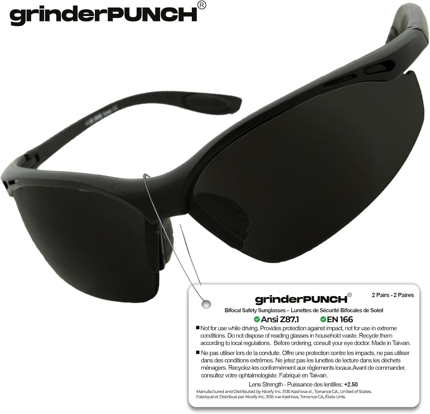- grinderPUNCH Bifocal Safety Black Lens Glasses Readers ANSI Z87 Impact Resistant Bifocal Diopter Magnifying Reading Glasses