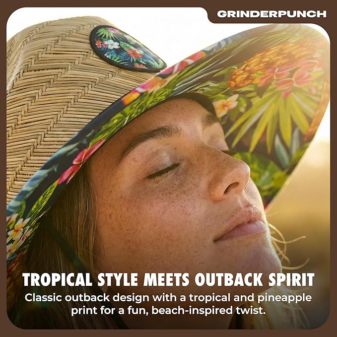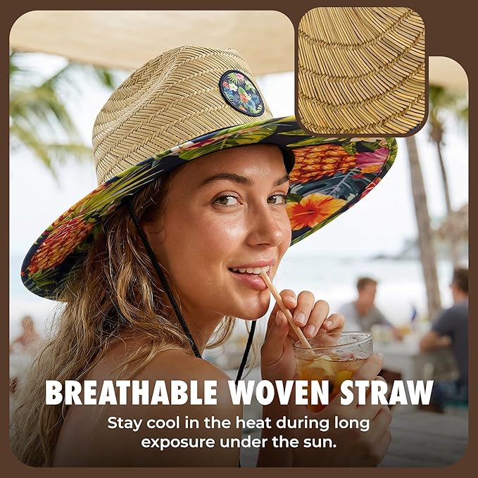 - grinderPUNCH Lifeguard Hat Mens Straw Sun Hat for Outdoor, and Travel | UPF 50+ Sun Protection | Straw Beach Hat for Men (US, Alpha, One Size, Tropical Pineapple)