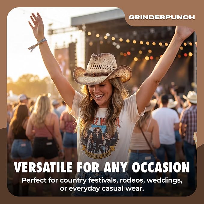 grinderPUNCH Western Outback Cowboy Hat Men's Women's Style Classic Straw Western Cowgirl Hat Leather