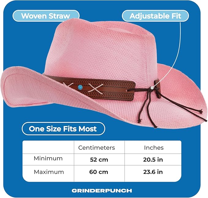 grinderPUNCH Western Outback Cowboy Hat Men's Women's Style Classic Straw Western Cowgirl Hat Leather