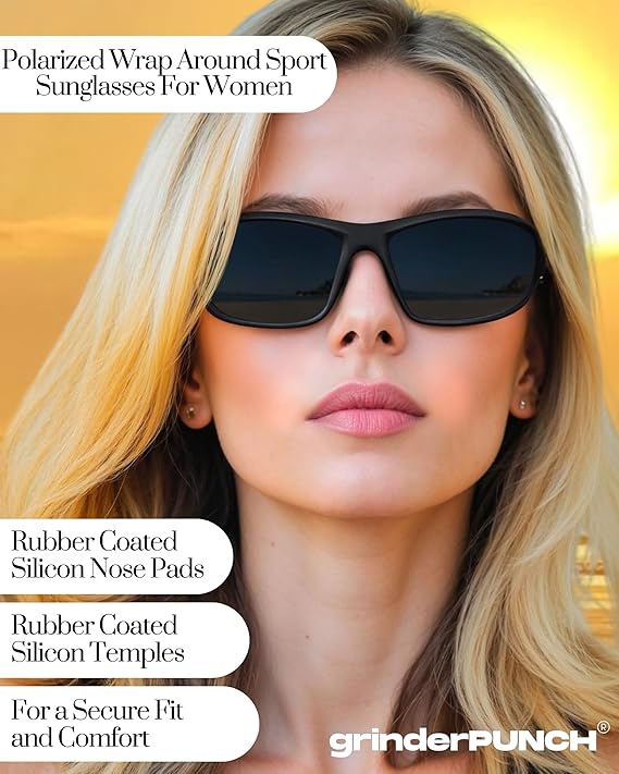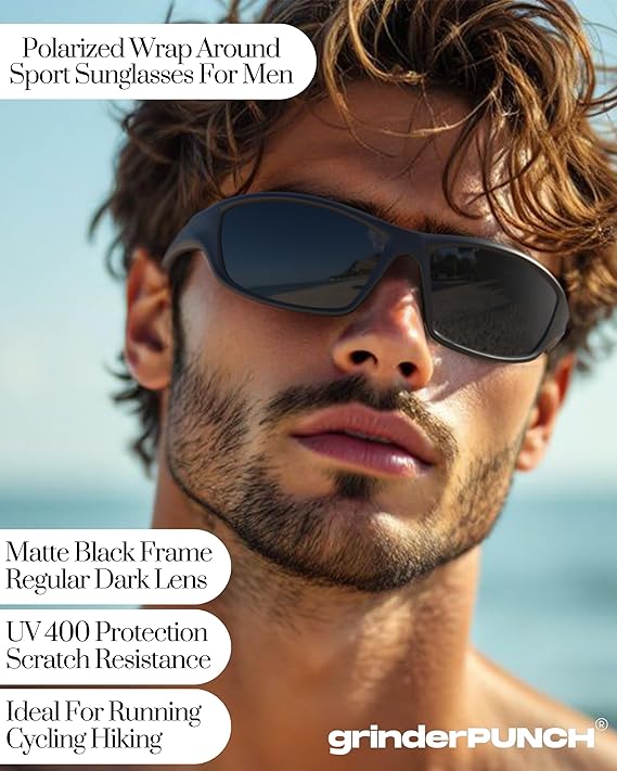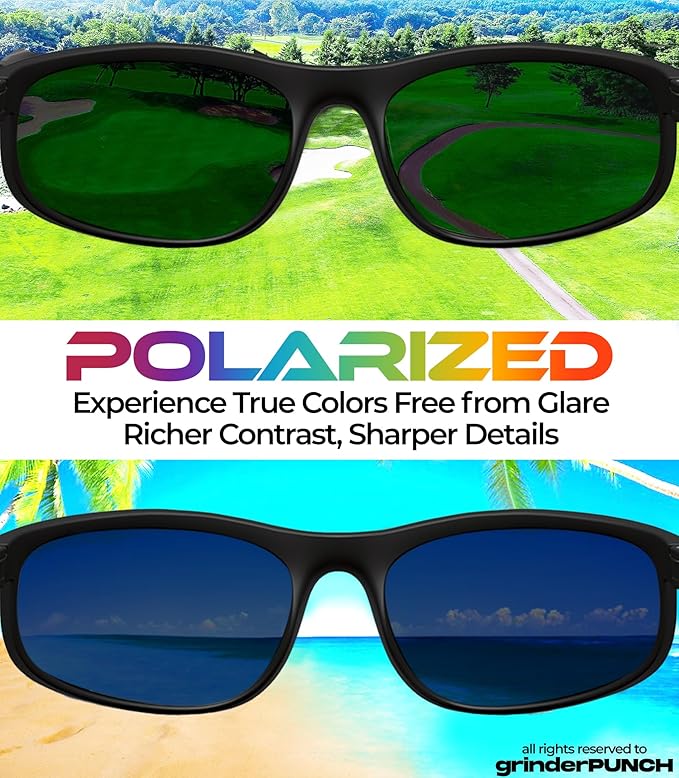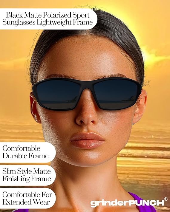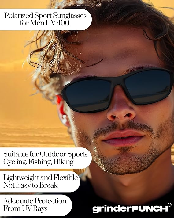 - grinderPUNCH Sport Polarized Sunglasses for Men & Women Baseball Running Cycling Fishing Golf Driving Shades Sun Glasses (Polarized Black Lens)
