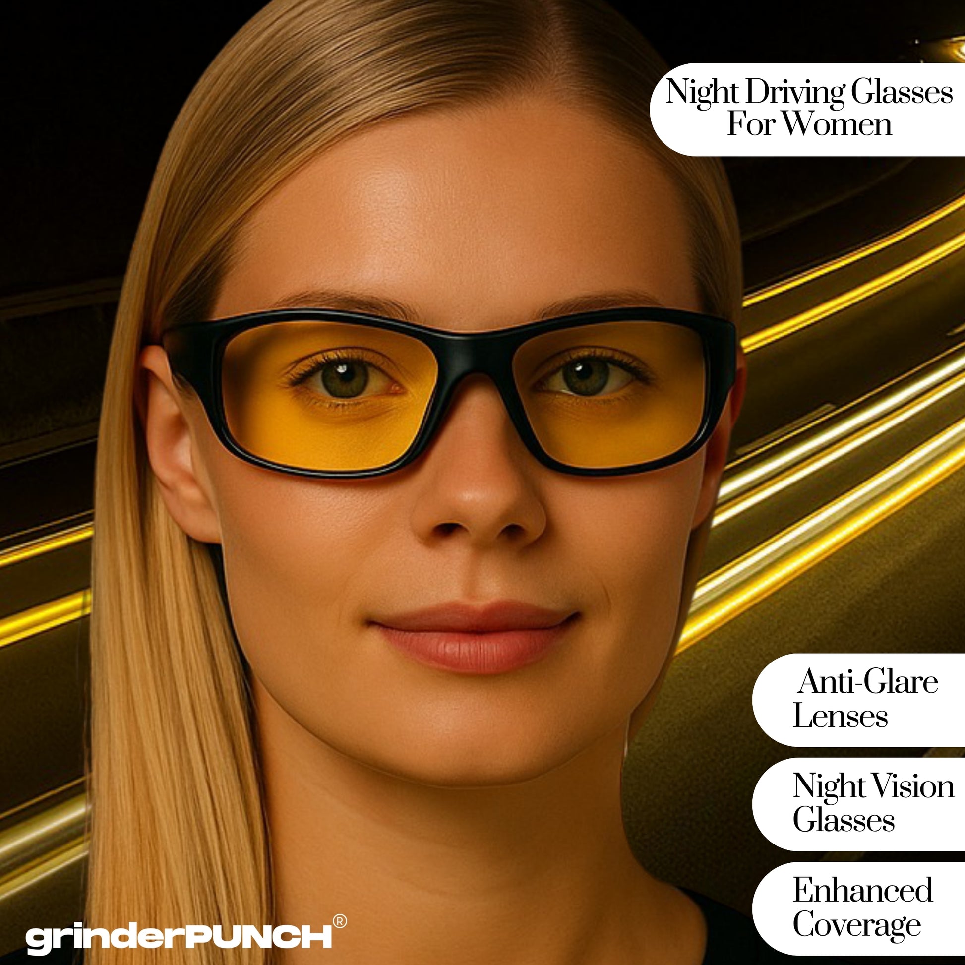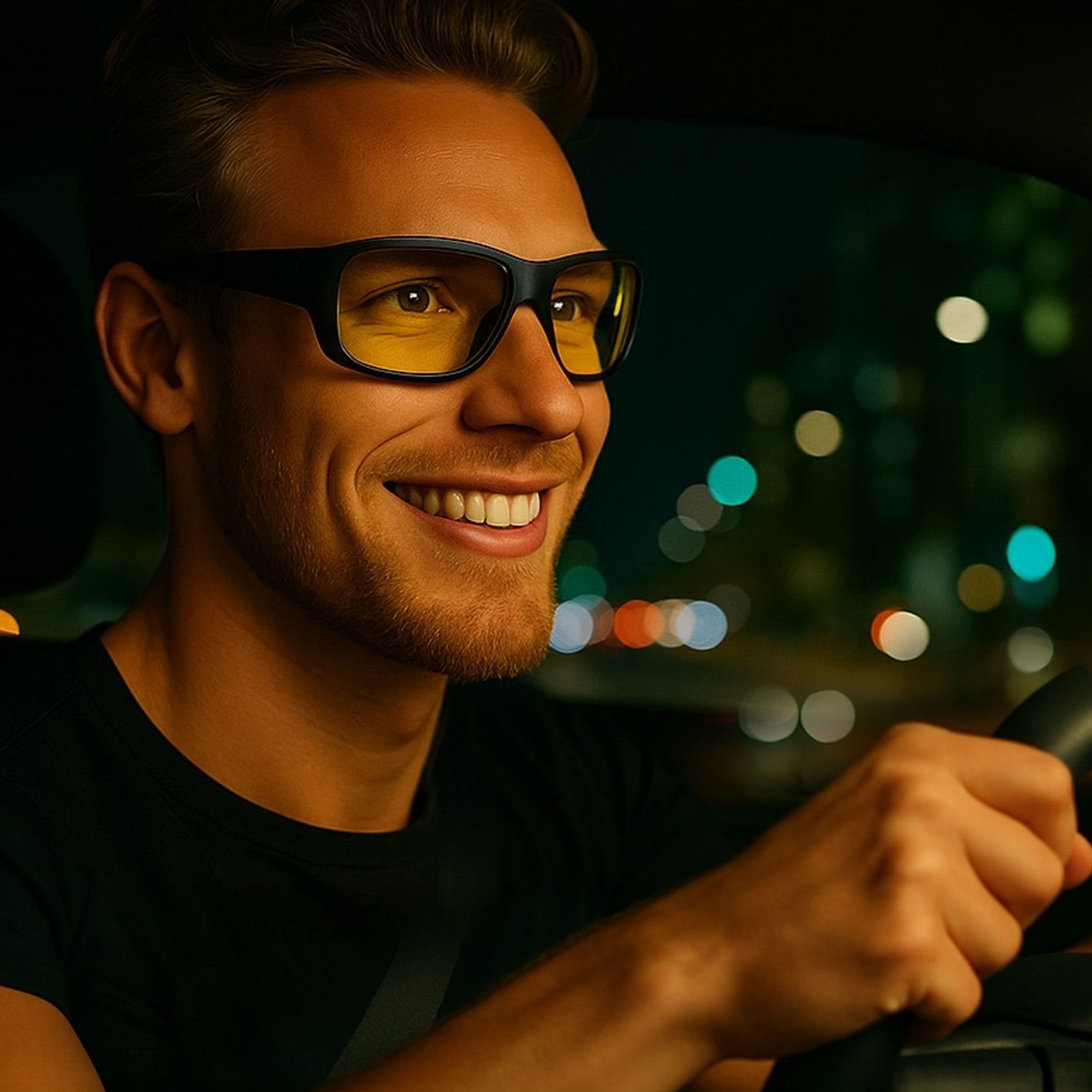 - ENHANCED CLARITY WITH HD NIGHT VISION YELLOW LENSES: Equipped with high-definition yellow-tinted lenses, these night driving glasses significantly boost visual clarity in low-light conditions such as dusk, dawn, rain, fog, and nighttime. The yellow lens enhances contrast and depth perception, helping drivers distinguish road markings, signs, and obstacles with greater precision. Whether you're driving through dark highways or dim rural roads, youâll experience sharper, more confident vision.