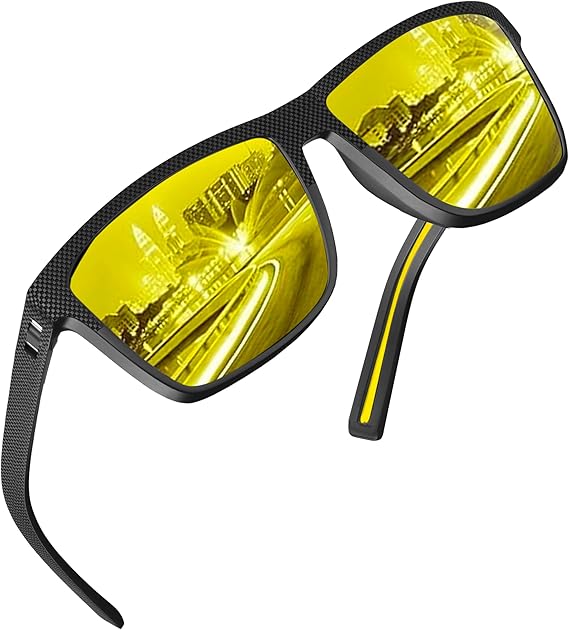 - IMPROVED VISIBILITY AND SHARPNESS WITH POLARIZED LENS CLARITY: The premium polarized lenses filter out scattered and diffused light that can obscure your vision at night. By reducing light flares and reflections, these yellow lens sunglasses provide a clean, unobstructed field of view, improving focus and response time while reducing halos and light distortion around vehicle lights.