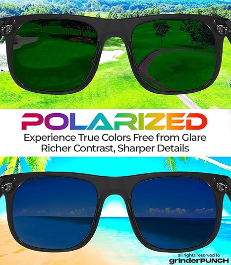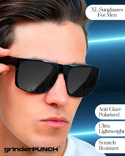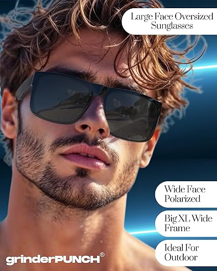 - grinderPUNCH 2 Pack XL Polarized Big Wide Frame Large Head Fit Sunglasses for Sports Driving Fishing Glasses (Black Polarized Lens)