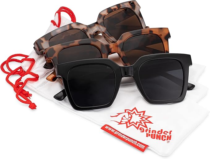 - grinderPUNCH Womens Boyfriend Style XL Oversized Horned Rim Thick Sunglasses Women's Retro Vintage Style Oversize (3 Pack Bundle Saver)