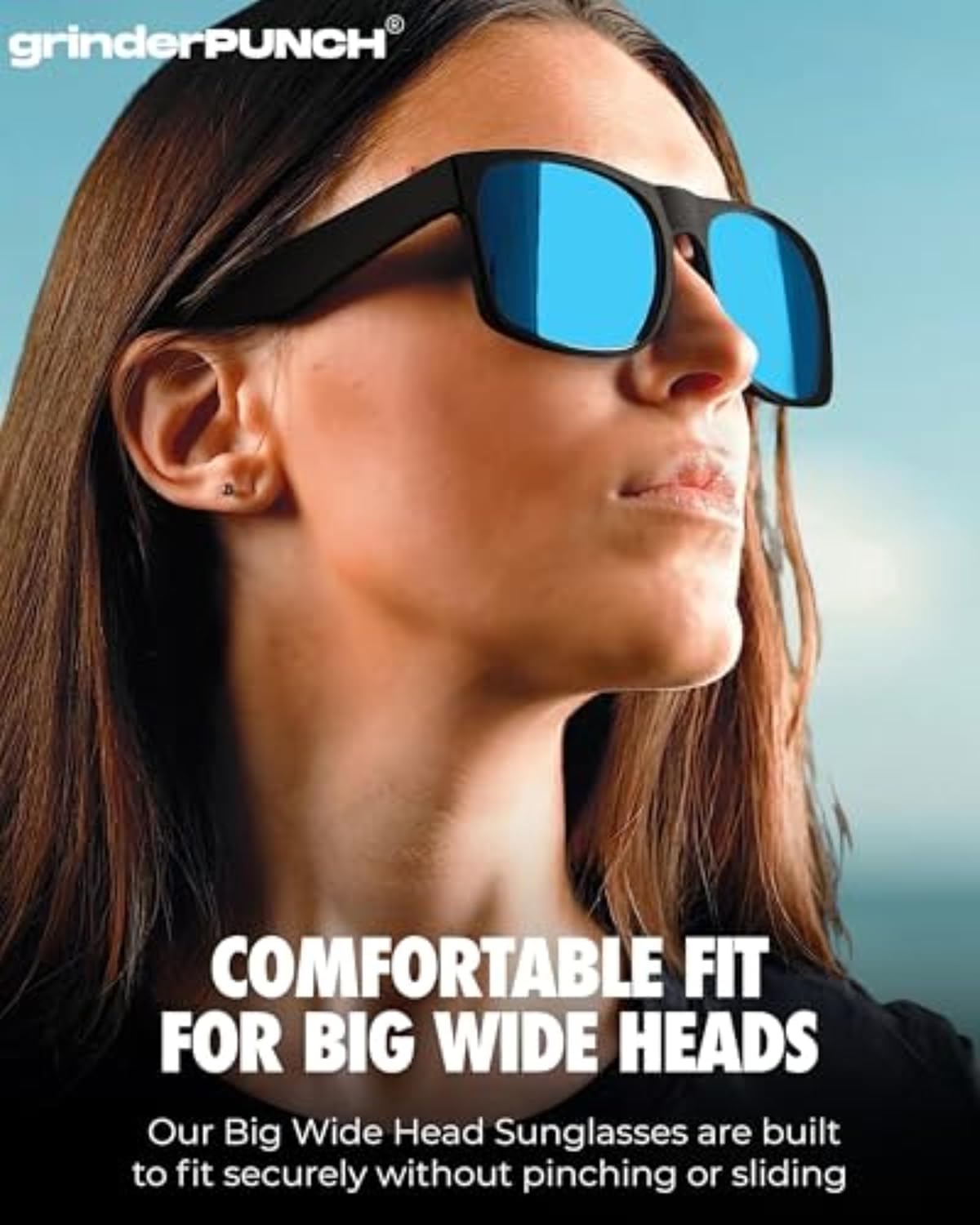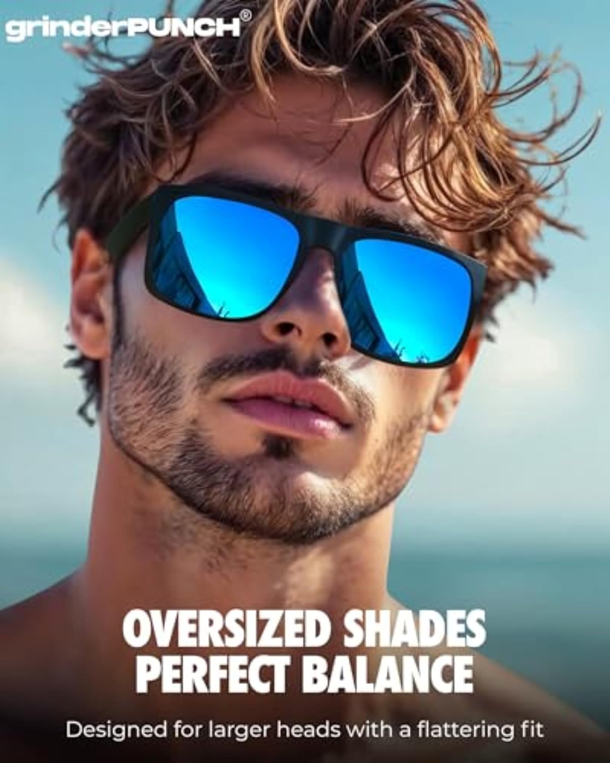 - grinderPUNCH XL Oversized Polarized Sunglasses for Men – Wide Fit for Big Heads, Matte Frame, Blue Mirror Lens
