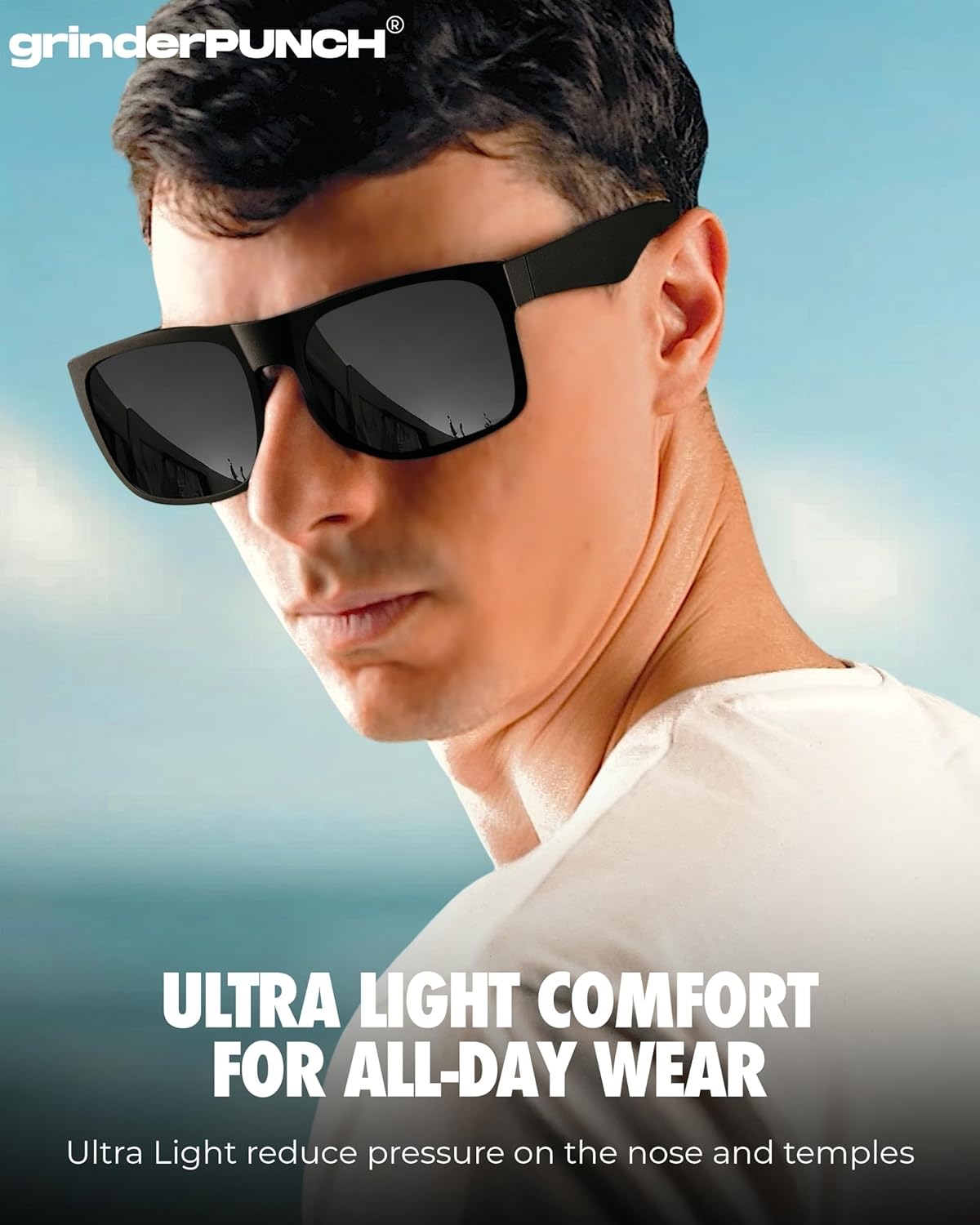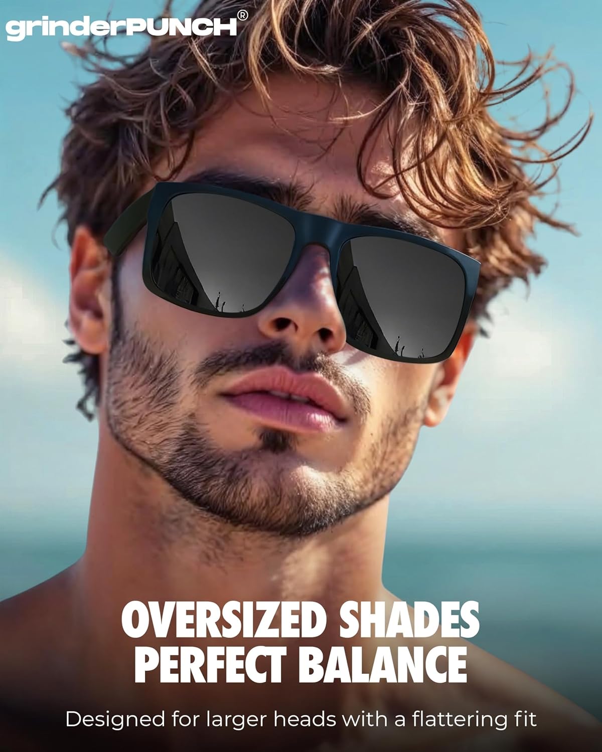 grinderPUNCH XL Sunglasses Big Heads Wide Face UV400 Protection, Extra Wide Lightweight Sunglasses for Sports Driving Fishing Glasses Matte