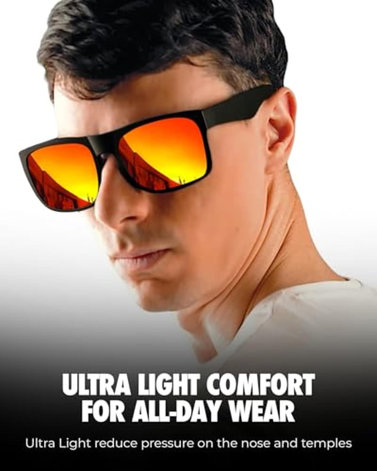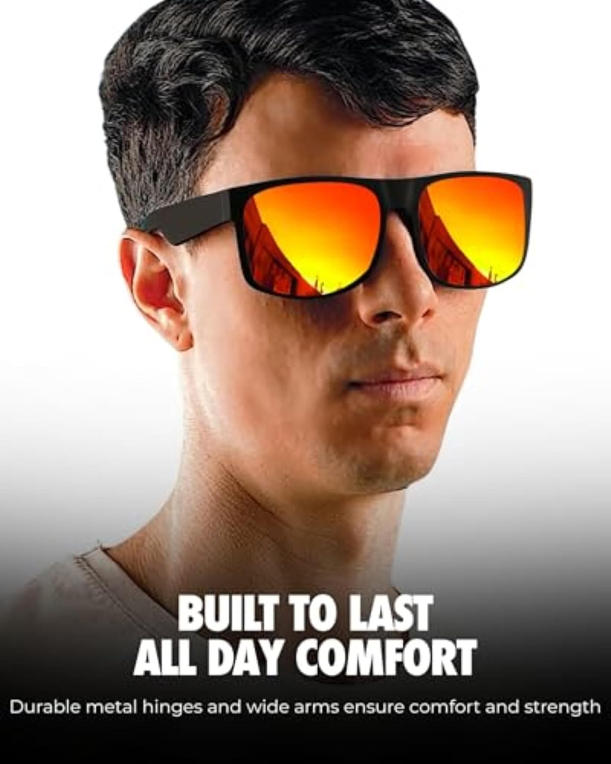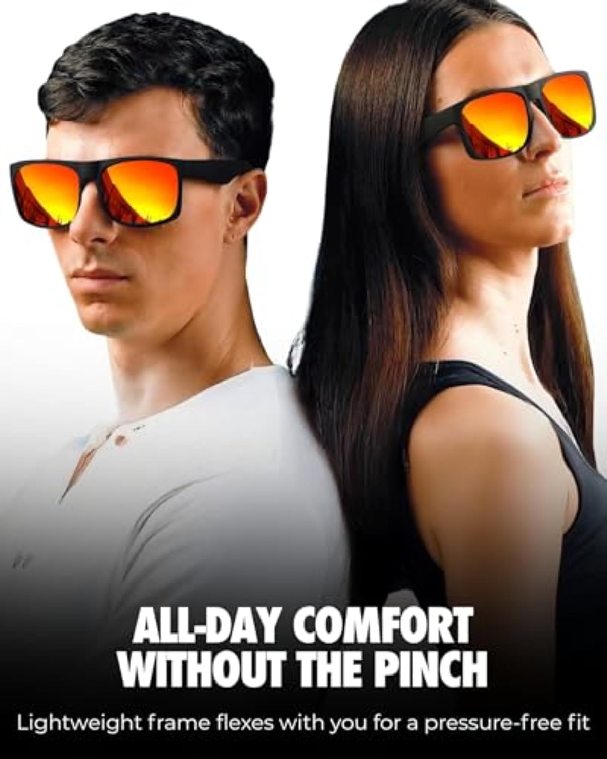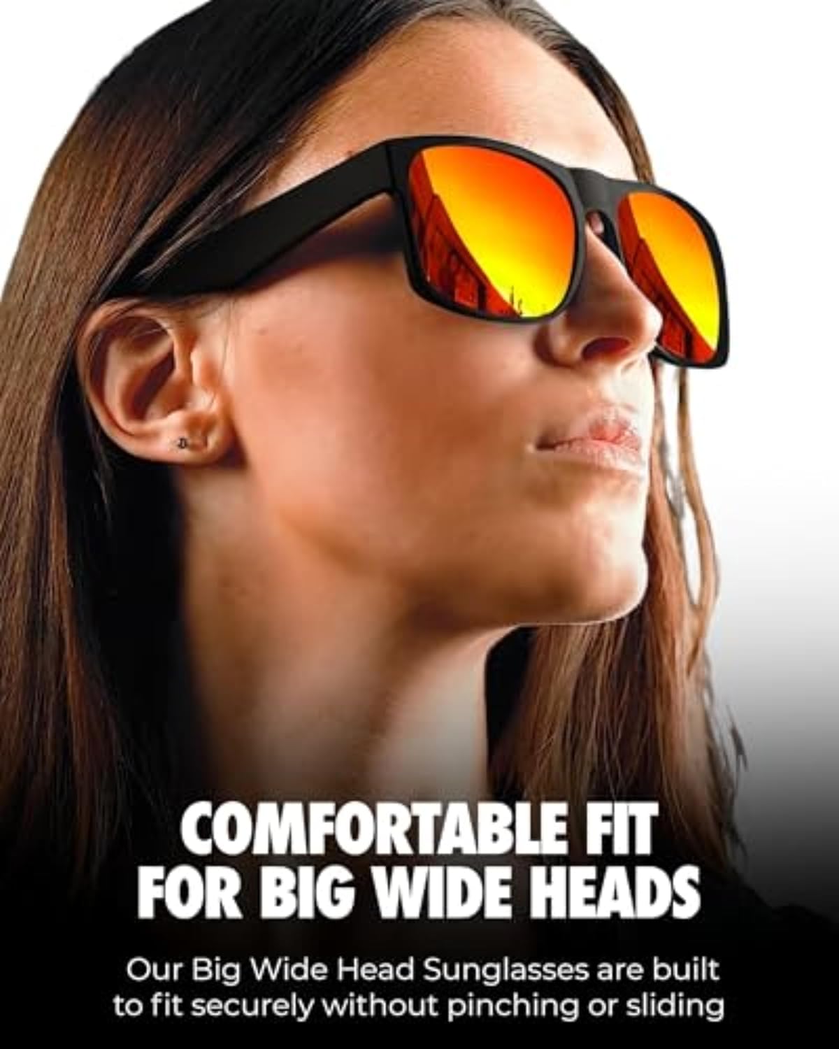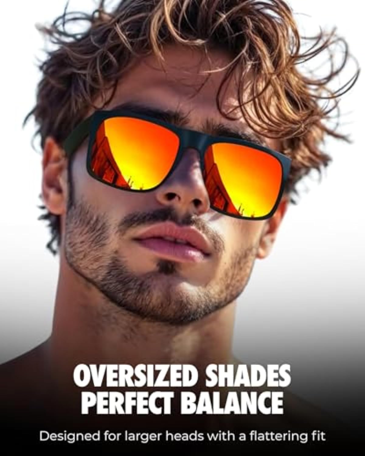 - BOLD RED POLARIZED LENSES FOR MAXIMUM IMPACT AND PROTECTION: Make a bold entrance with striking red mirrored lenses designed to turn heads and protect your eyes. These lenses reduce eye strain and provide sharp visual clarity in sunny conditions. Perfect for beach days, driving, or high-energy sports, they blend style with function. Engineered with an extra-wide fit, they’re ideal for men or women needing big sunglasses for women oversized, or other women's sunglasses oversized styles.