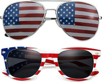 - CELEBRATE AMERICAN PRIDE IN STYLE: Honor the land of the free and the home of the brave with this two-pack of patriotic sunglasses. Featuring one pair of sleek aviator-style American flag sunglasses and one bold pair of red white and blue sunglasses, this set is made for true patriots. Whether you're dressing up for a parade, a cookout, or a day in the sun, these 4th july sunglasses are the perfect tribute to the stars and stripes.