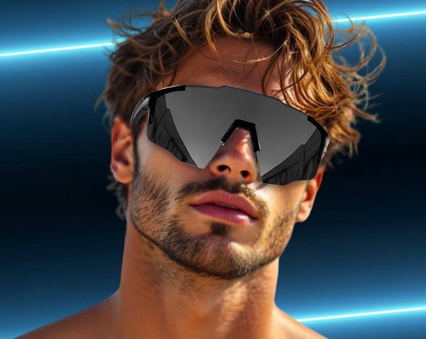 Polarized Sunglasses Men Womens Trendy Retro Sports Rectangular Wrap Around Vintage Shot Shield (Glossy Frame/Blue Lens)