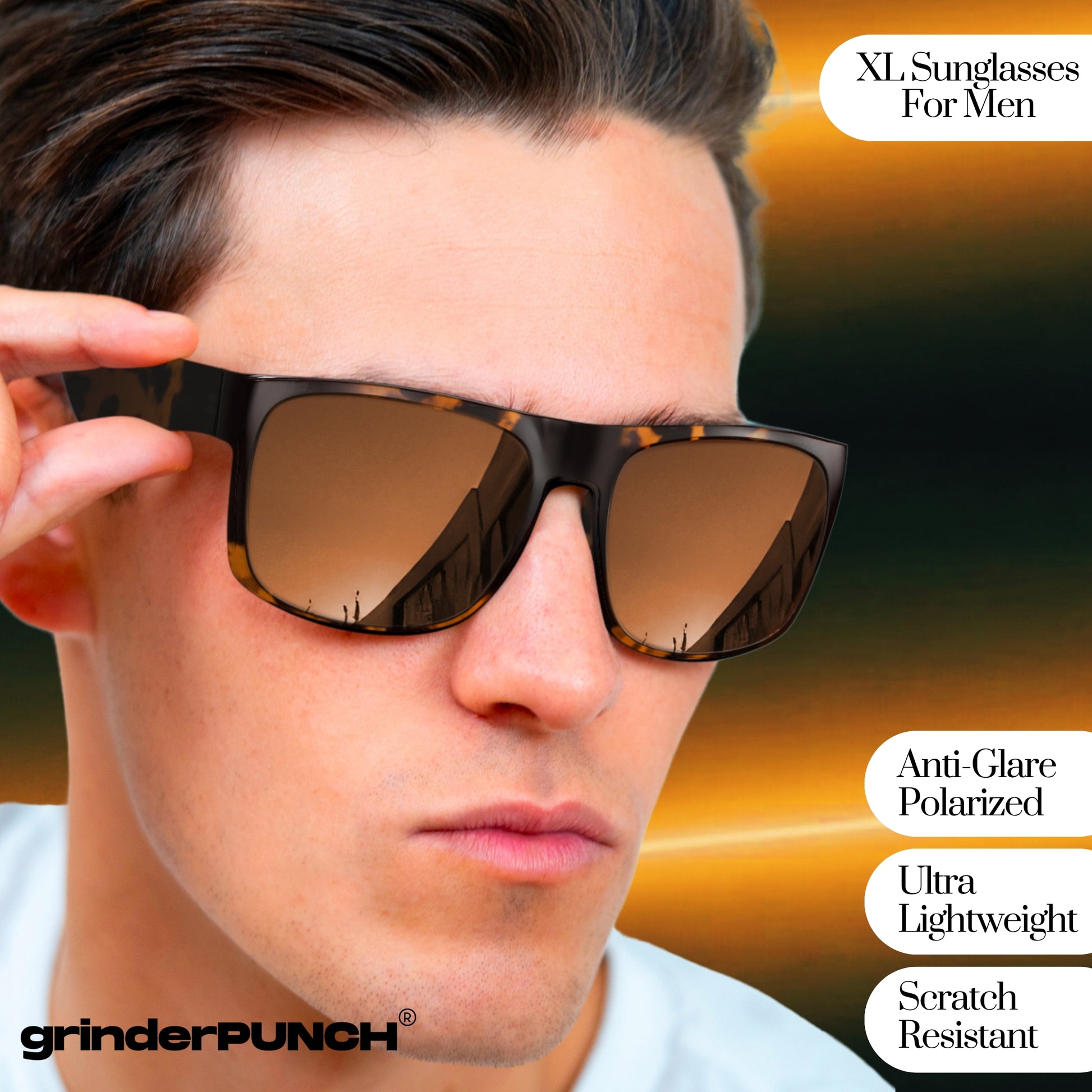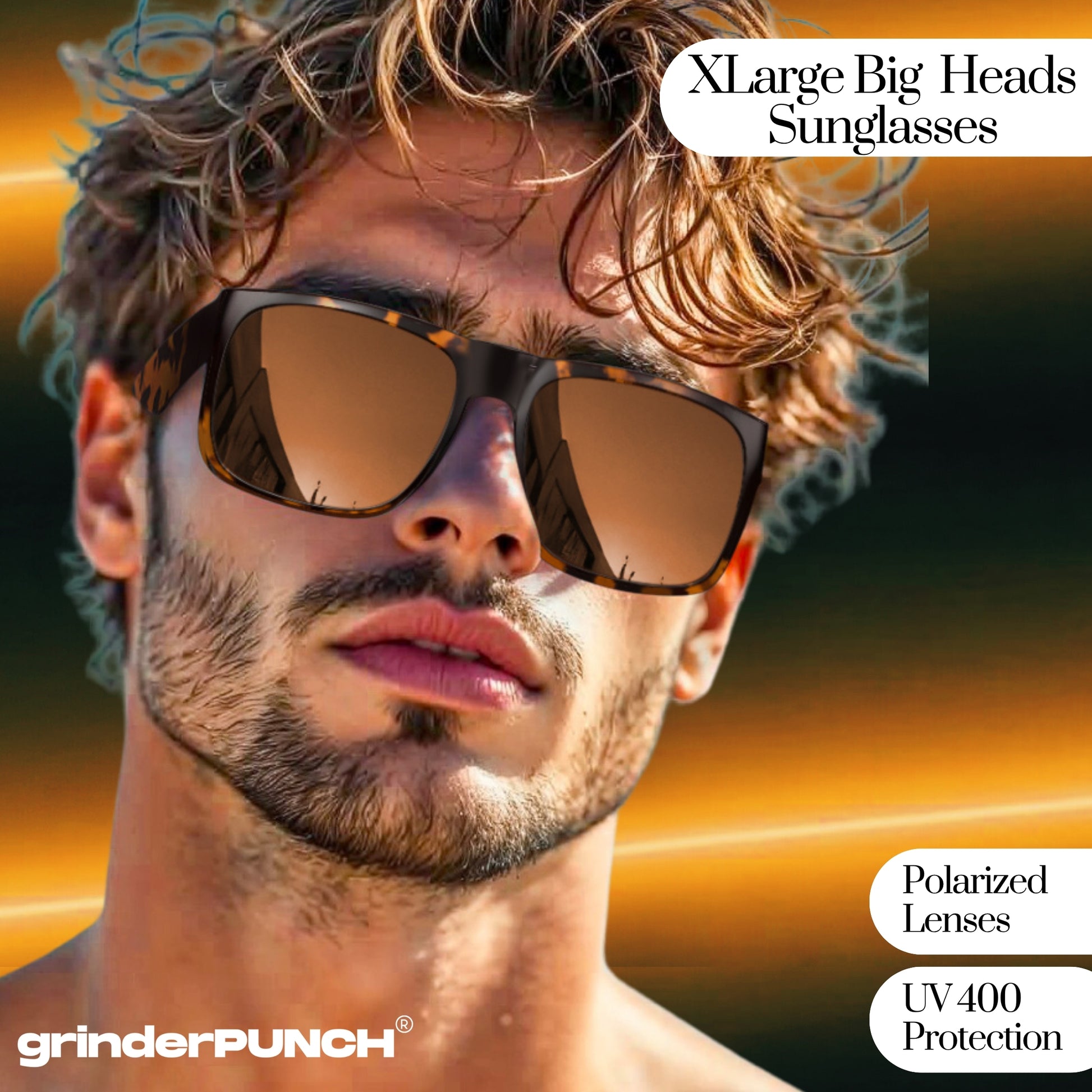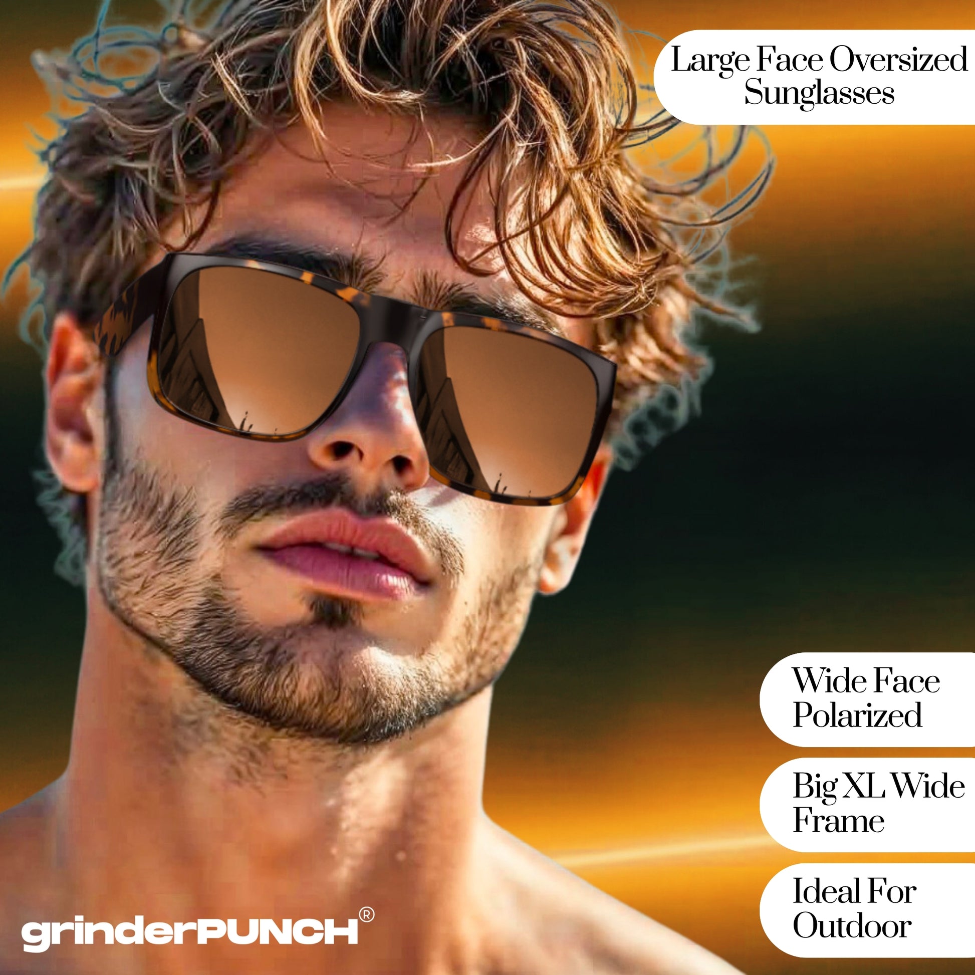 MADE FOR REAL PEOPLE WITH BIG HEADS: Designed from the ground up to meet the needs of customers with extra large heads. Say goodbye to tight-fitting frames and hello to the roomy, secure feel of grinderPUNCH XL sunglasses. With extra wide arms, a broader nose bridge, and an extended frame width, they’re ideal for men who’ve always needed sunglasses made specifically for large, wide, and oversized facial dimensions.